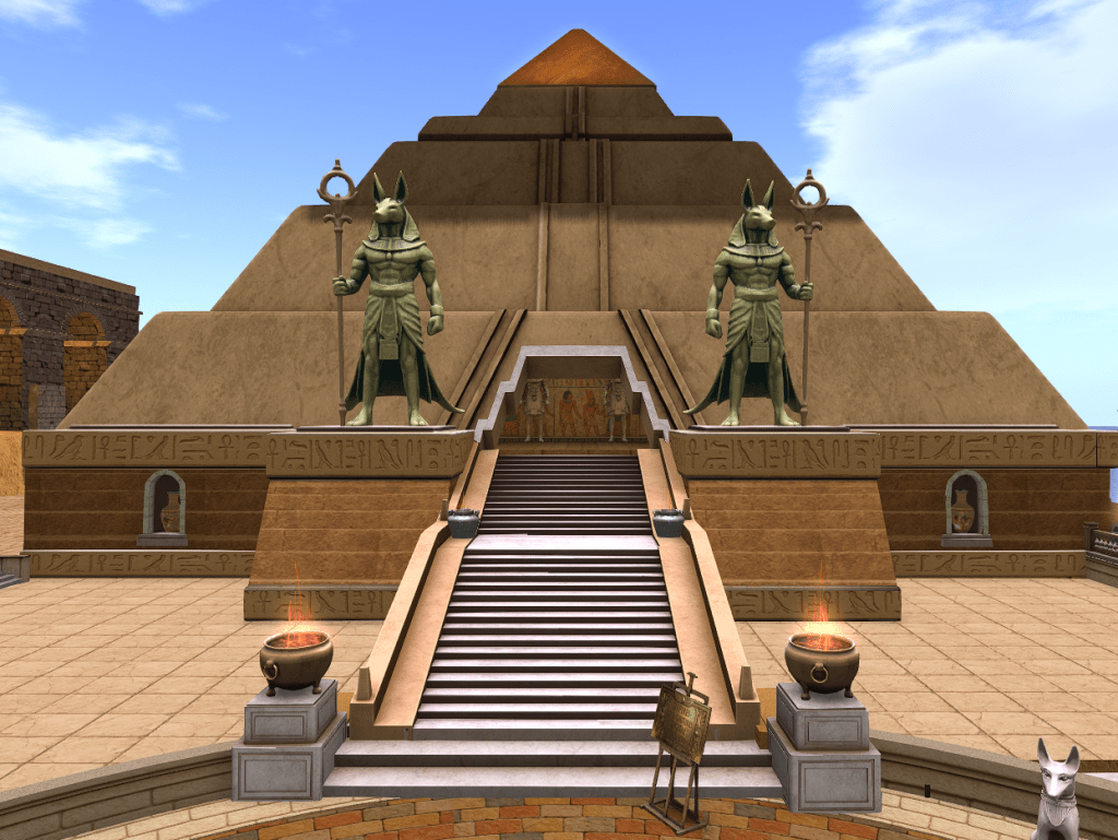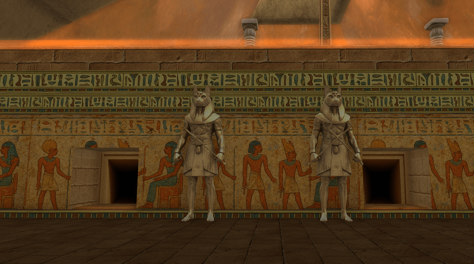 THE TWIN STATUES Interact with the Twin Statues in the correct order to claim your sacred gift. Those who succeed will encounter the Guardian of Bastet, a divine protector watching over your journey among the stars.